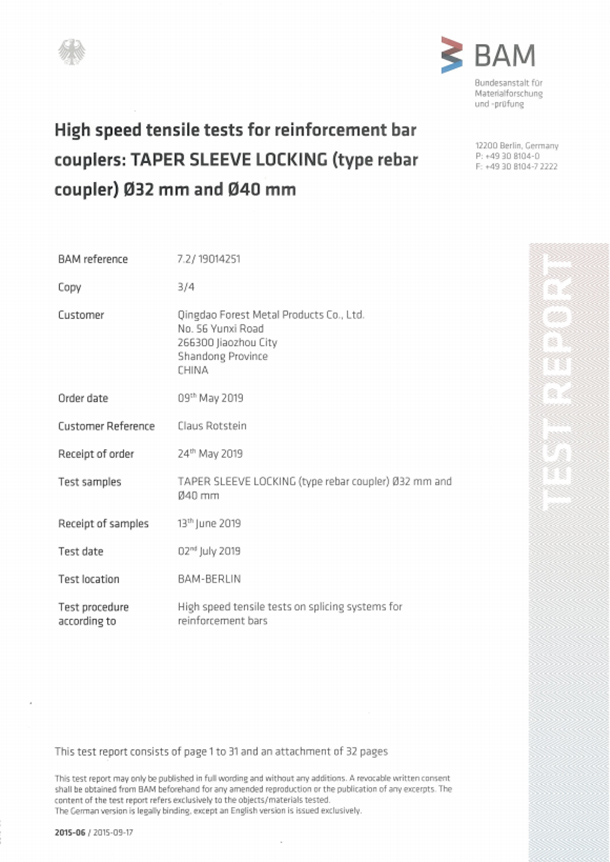 型式檢驗(yàn)報告(40#)