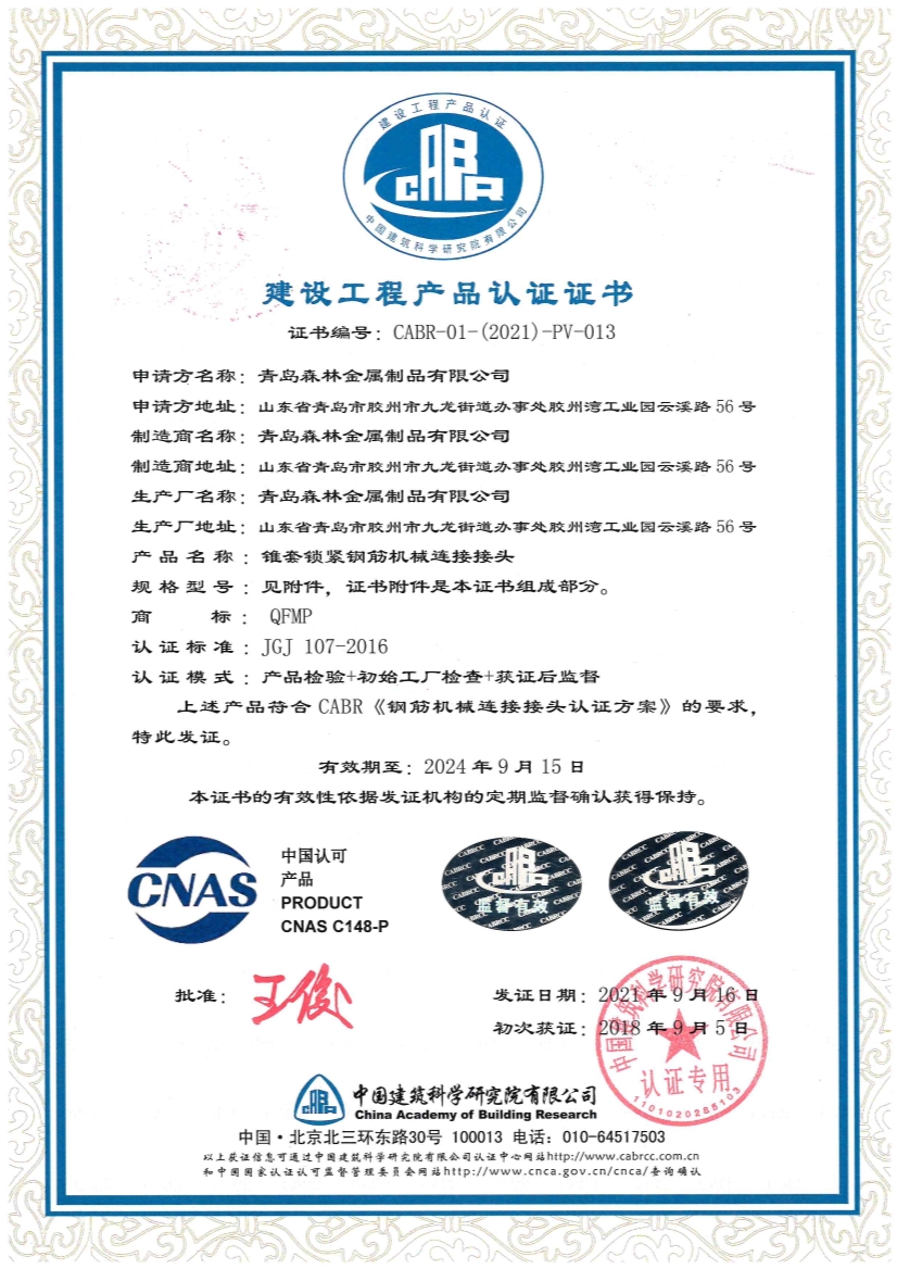 建設(shè)工程產(chǎn)品認(rèn)證證書